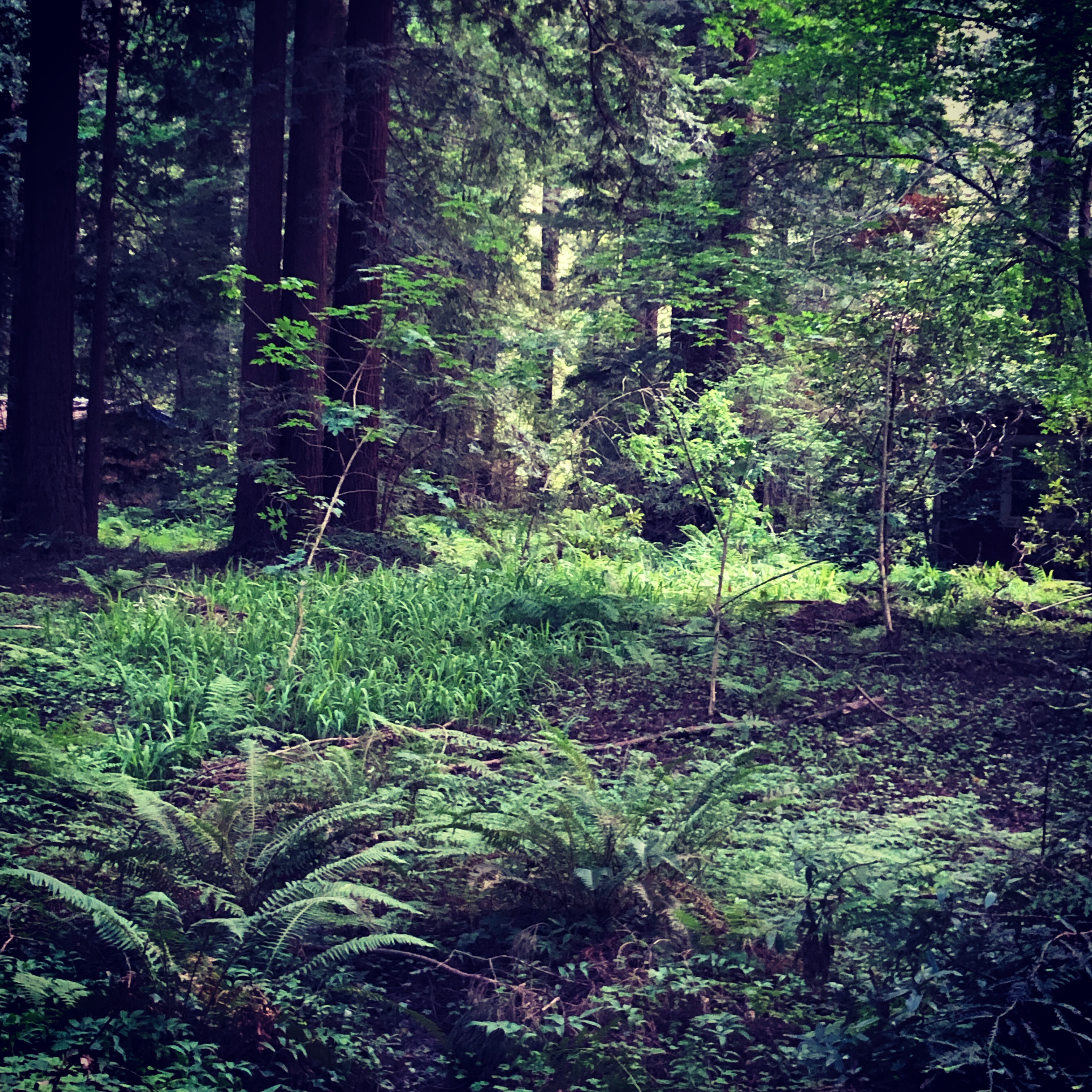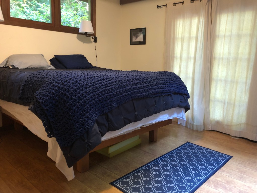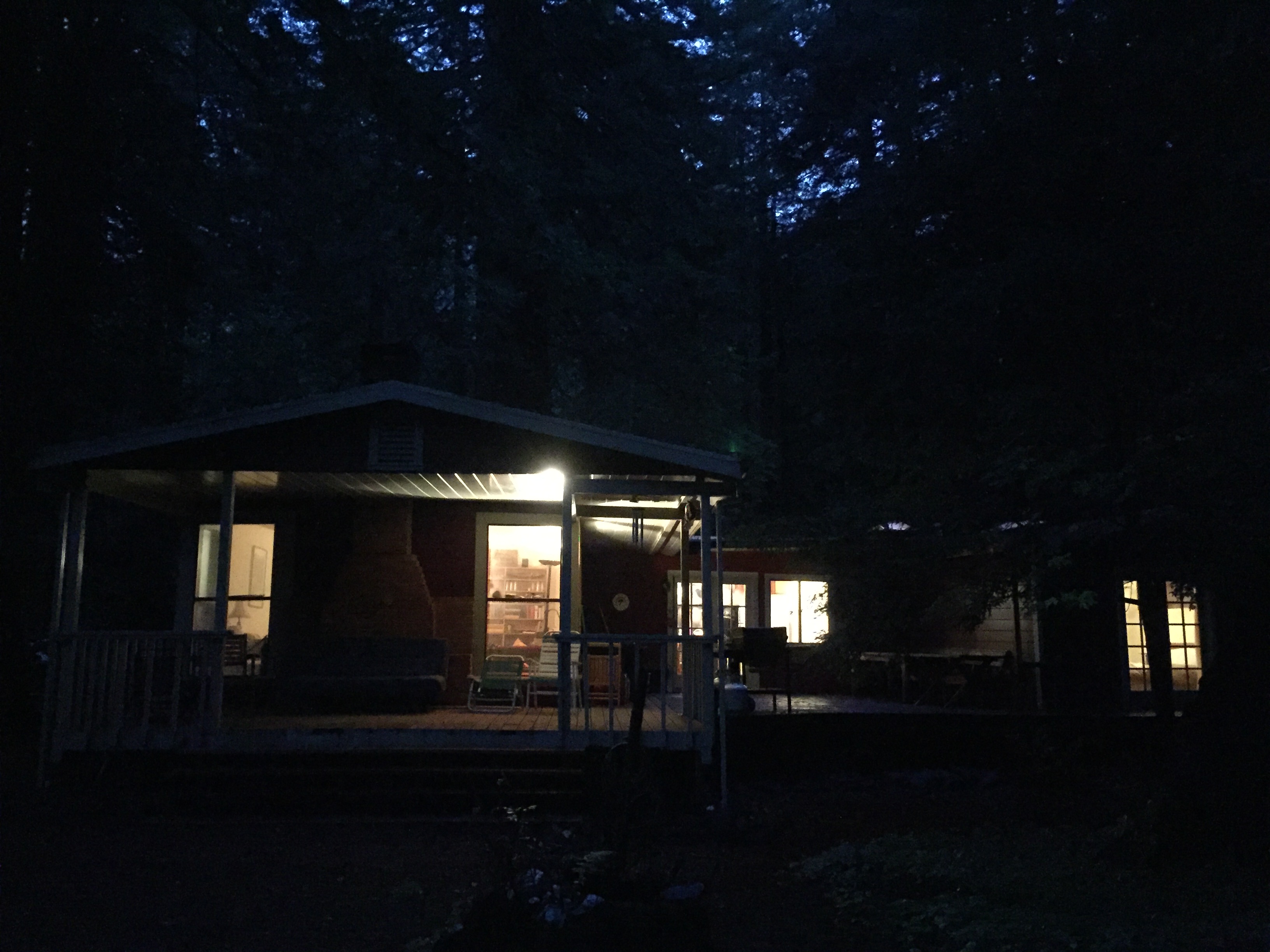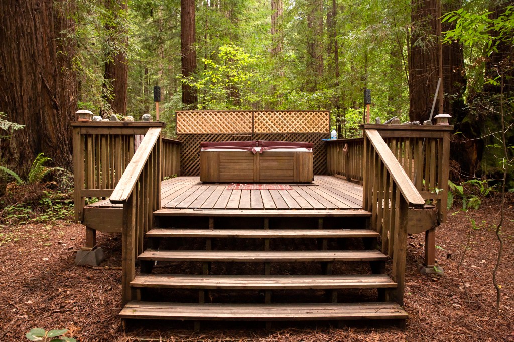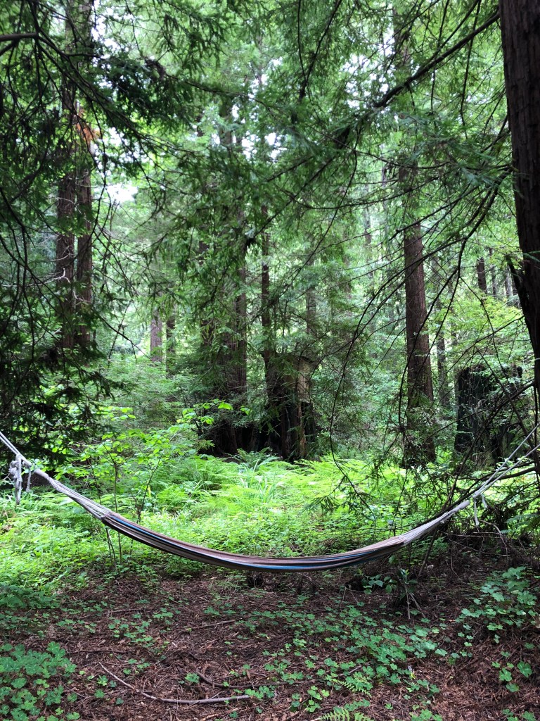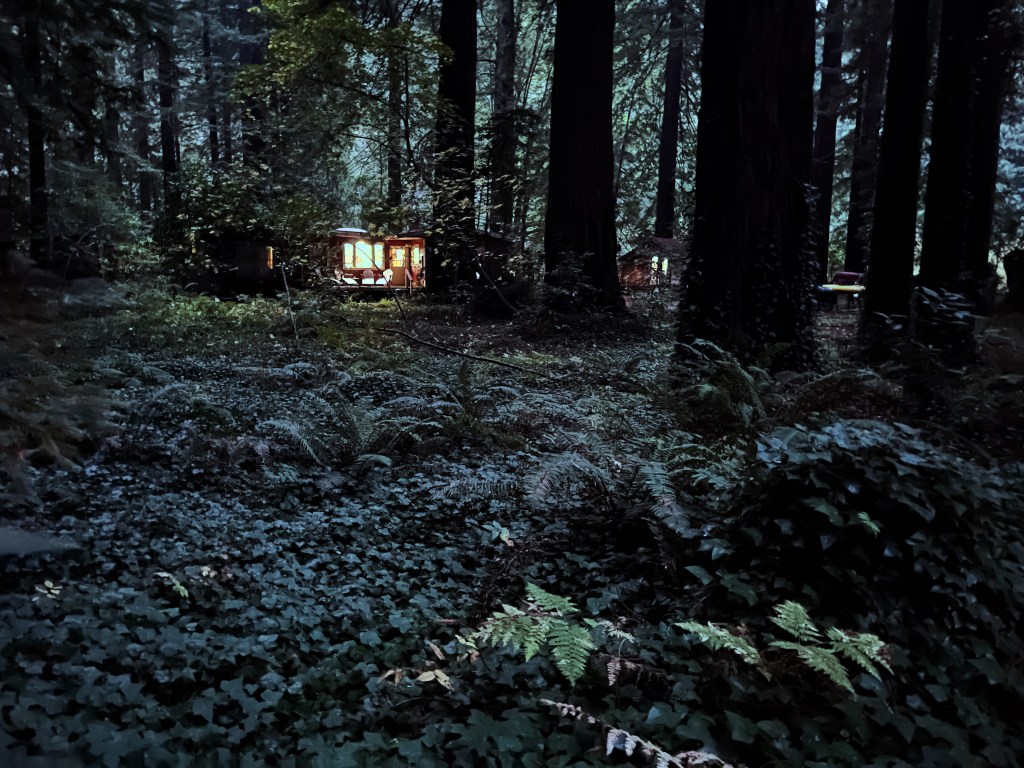 Our favorite reading corner is the hammock hidden behind a tree overlooking the creek. Nearby is the outdoor fire pit, with strings of fairy lights surrounding it. The hot tub easily seats 6 (the capacity seems to be N+1) and is in its own grove on its own deck in view of the creek. Redwood fairy rings dot the property.