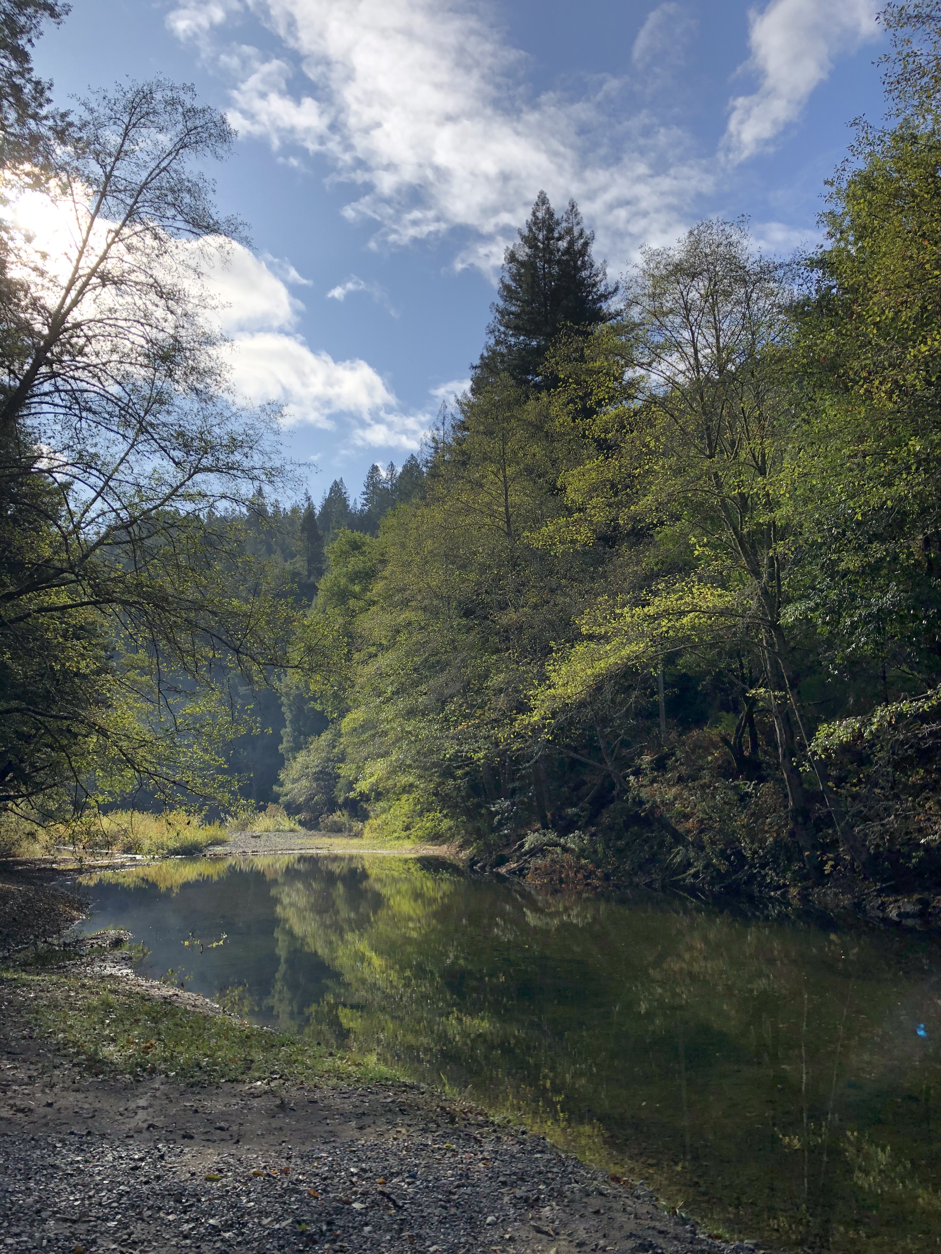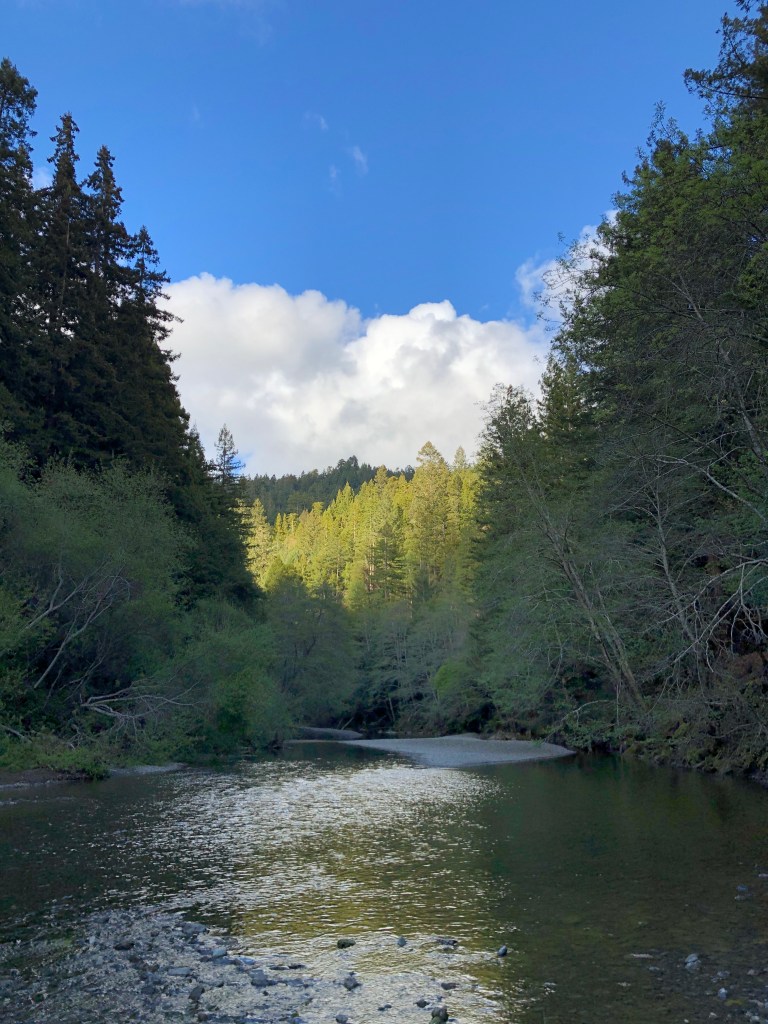Along a winding creek you’ll find the tranquility of Austin Creek in a 2 acre redwood forest.