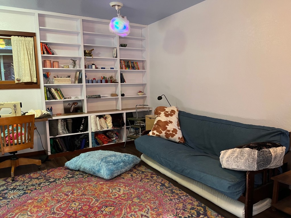 The third bedroom currently has a day bed with trundle bed, as well as a third single bed available. It is primarily set up as a library and office.