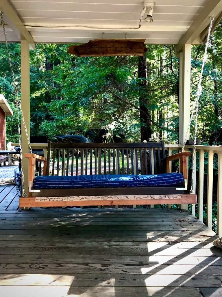 The back porch holds a double futon as well as a porch swing and barbecue. If you’re really crowded there are two large sofas in the living room that get rave reviews.
